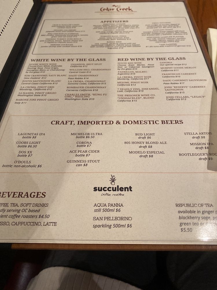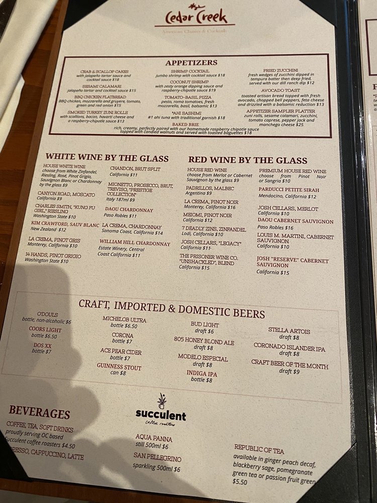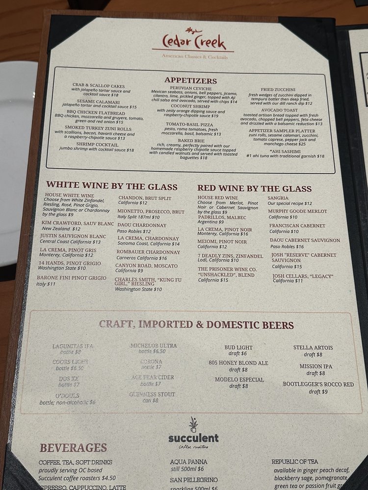 Cedar Creek Inn Menu (2025 Update)